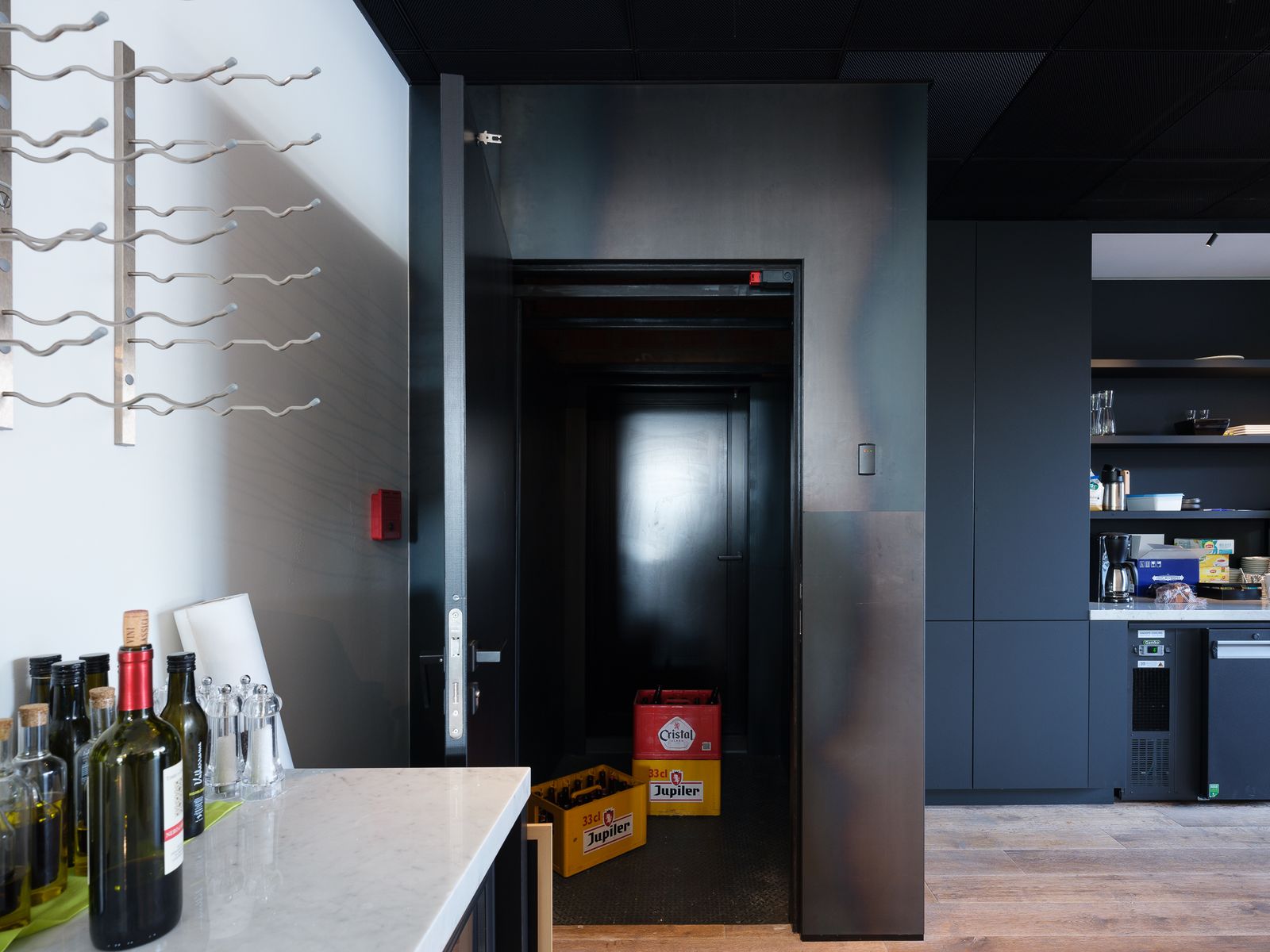 De lift werd geplaatst in een gesloten schacht, volledig conform de geldende richtlijnen. Zo wordt een veilige en efficiënte goederenstroom in het gebouw gegarandeerd.