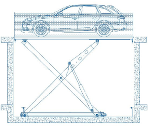 Karakteristieken autolift zonder dak * schaarsysteem met 2 cylinders * met of zonder bestuurder